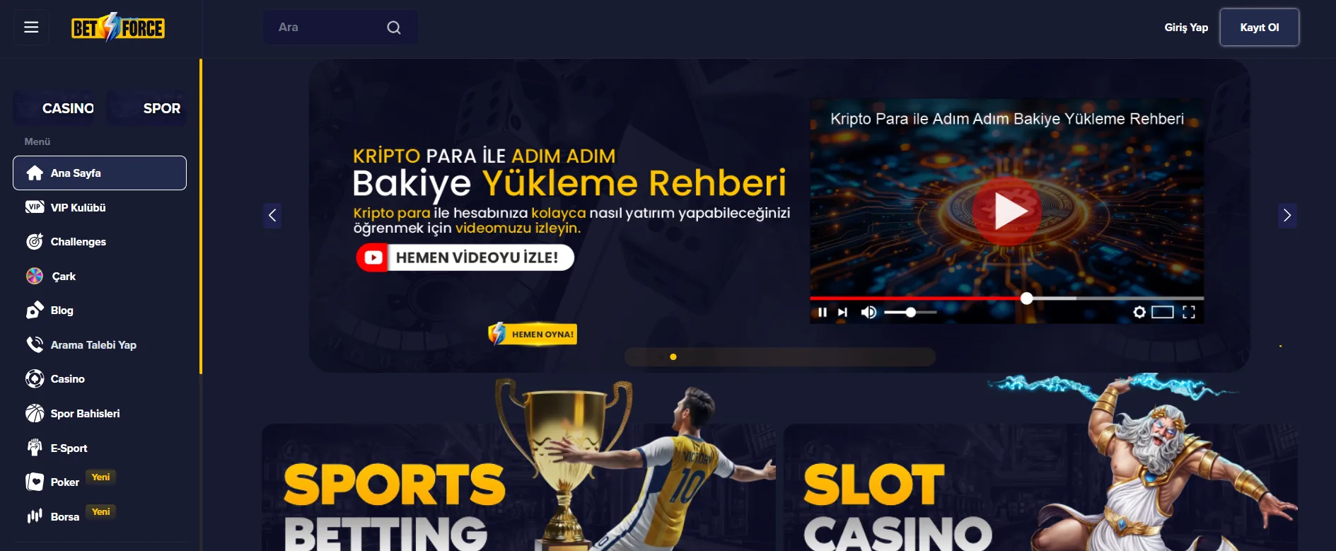 Canlı Casino, E-Spor, Kripto Casino, Slot, Spor Bahisleri